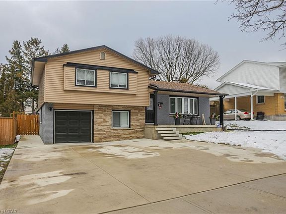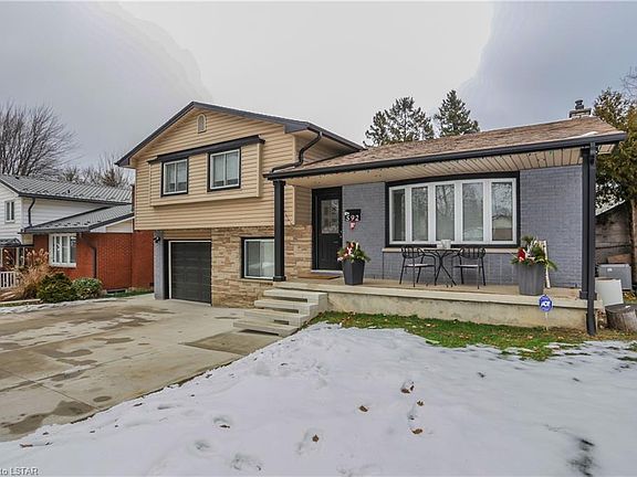 Welcome to this solid side-split on a large private fenced lot in a great neighbourhood. Four levels of completed living space & each level just as beautiful as the previous one before. This home includes 3 bedrooms & 1.5 baths & has been extensively updated in the last 5 years. Open foyer, a show stopping kitchen with quartz, appliances included & plenty of cupboard space. Patio door off the dinette to the pool deck, that overlooks the large backyard & inground pool. Large living room with build-out & fireplace. Both bathrooms have been updated with beautiful vanities, tile & flooring. Upstairs are three good sized bedrooms with large closets. Lower level has an additional family room with an electric fireplace, inside entry from the oversized 1 car garage & walk-out to massive deck & gazebo. The basement is home to a large family/games rec-room, laundry room & utility/storage space. Exterior continues to impress with its newer massive concrete drive & walkways, concrete pool deck, saltwater heated kidney shaped pool, front porch, pool shed & workshop. Tons of upgrades over the years, move in ready, just in time for Summer fun!! Perfect location for any family, close to schools, shopping, & highway access.