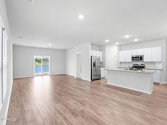 kitchen commands attention. Designed for culinary enthusiasts, it features sleek white cabinetry, granite countertops, stainless steel appliances including a gas range, a breakfast bar, and a pantry. The expansive master suite serves as a tranquil sanctuary, boasting a lavish ensuite bath complete with a walk-in shower, dual sinks, and a generously sized walk-in closet. Step outside through the living area's slider to discover the covered back porch, providing an ideal vantage point to soak in the breathtaking water view that spans the entire rear aspect of the home, seamlessly merging indoor and outdoor living spaces. Natural gas services the heat, tankless water heater, and gas range. Community residents enjoy a location away from the main hustle and bustle while being a short drive from the beach for a perfect blend of serenity and excitement. Amenities include a neighborhood pool, playground and community garden. Your Longs address, located between Loris and the Atlantic Ocean, provides you with close proximity to all the attractions and amenities of