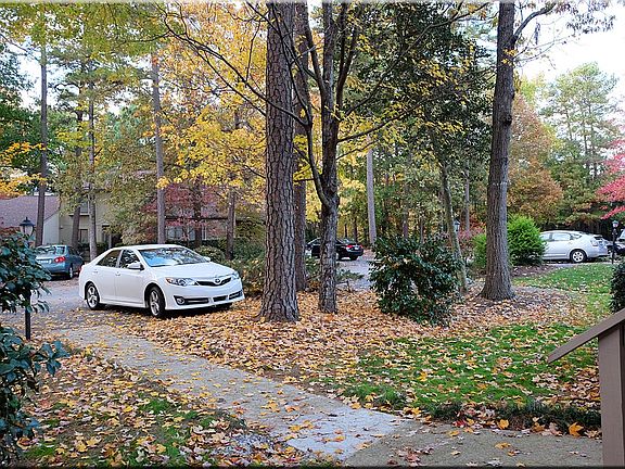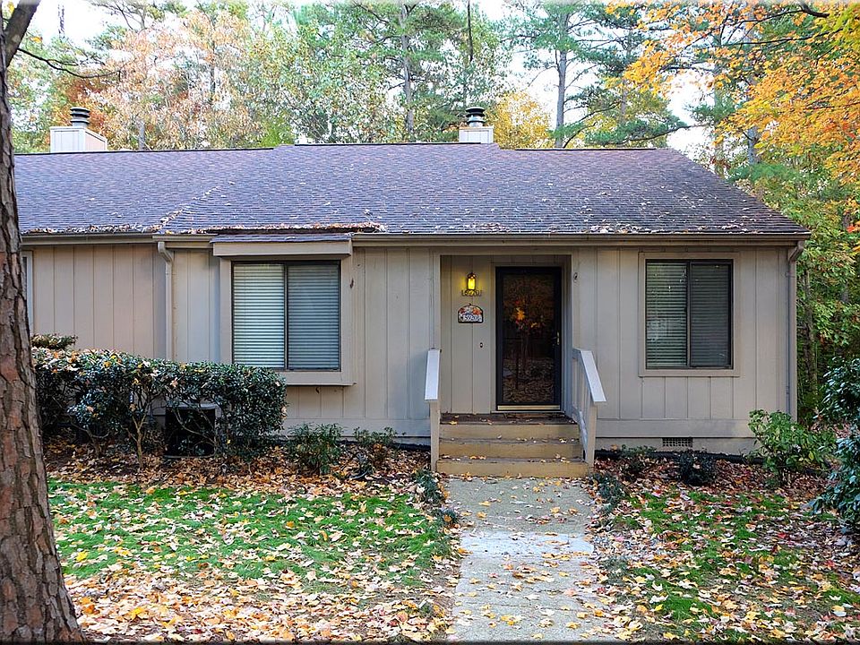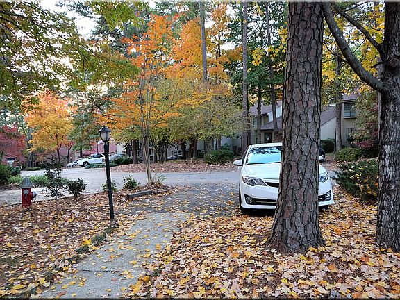 NRaleigh-walk to N. Ridge shopping center or dine out! So rare to find an affordable single lvl TH w/appealing location & interior features-but here it is! Hardwds in entry, ktchn w/tile countertops & loads of cabinets. Grt rm w/vltd ceiling, skylts & stone fireplace. Charming, priv wooded vw from grt rm & master bedrm give this end unit TH single family style! Fresh paint in Master. New carpet thruout. Fabulous buy. vacate date 3-1 preferred but move in date 2-1 possble.Fall in love & make it your own!