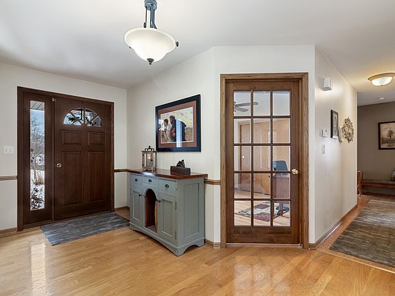 Stunning and spacious 4 bedroom home! Nestled on a nearly half acre lot, this home features hardwood floors, a recently updated kitchen, and 2 stone fireplaces. Main level fireplace has been upgraded to gas and is on an automatic thermostat. Finished lower level walkout features large living area, 4th bedroom, 3rd bathroom, and patio with pergola. Close to Lake Geneva with low Lyons taxes!
