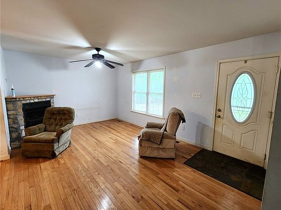 - Bedroom on Main Level, Bathroom Rough-In, Ceiling Fan(s), Dining Area, Fireplace, Jetted Tub, Laminate Counters, Bath in Primary Bedroom, Main Level Primary, Window Treatments