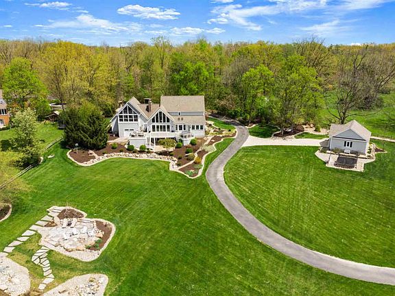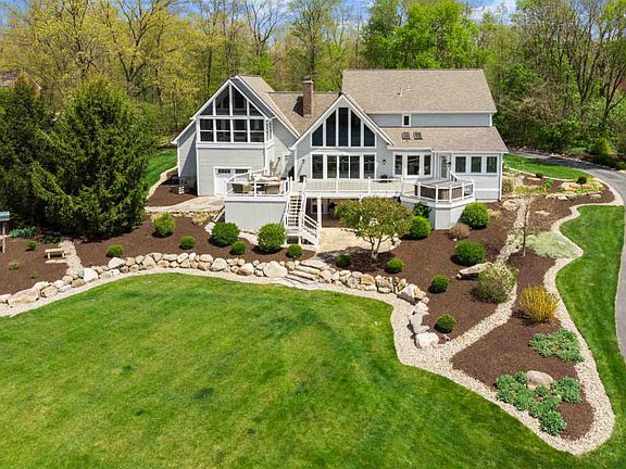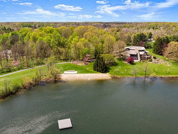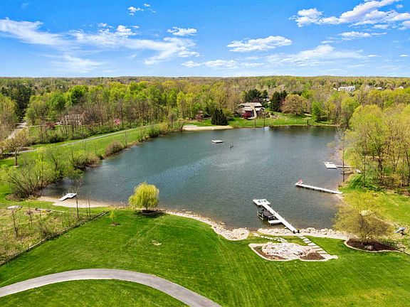This completely remodeled home on 2.4 secluded acres on a 6-acre shared pond brings the best of both worlds! Enter from the screened porch w/ polished concrete flooring to the 3-story foyer w/ tons of windows + views of the curved staircase & the lake. The great room has vaulted ceiling, fireplace + wall of windows overlooking the Trex® deck & private, stocked lake w/ public diving platform + beach. The kitchen has a center island, newer stainless appliances, stone counters + large breakfast bar. This area flows to the gorgeous sunroom w/ newer louvre windows & the eating area w/ window bench + skylights. The laundry room, home office, formal dining room + half bath complete the main level. The attached 3-car heated & AC garage has built-in seating/coat cubbies, epoxy floors + an attached shed w/ overhead door to the backyard. Upstairs, the balcony overlooks the great room & lake. The master suite is amazing â w/ vaulted ceiling, glass sliders to private porch + built-in electric glass fireplace. The ensuite has attractive dual-vessel sinks, garden tub + glass walk-in shower w/ 11 showerheads. Bedroom 2 has a private ensuite w/subway tiled standup shower + coordinating floor tile. Bedrooms 3 & 4 share the homeâs 3rd updated full bath. The finished lower levelâs great room has a brick fireplace, built-ins, kitchenette w/ stone counters. The theater room has a removeable carpeted platform, 2 large storage closets & houses the homeâs mechanicals. Sliding doors on this level lead out to the ground level porch. The 24 x 36 outbuilding has propane heat and extra room for storage.