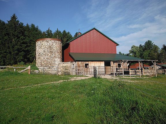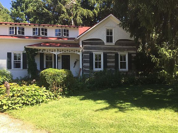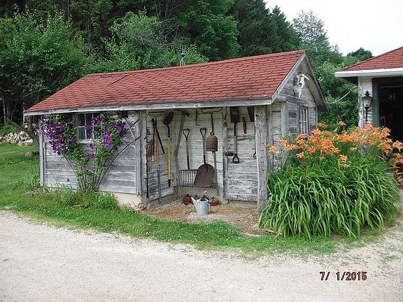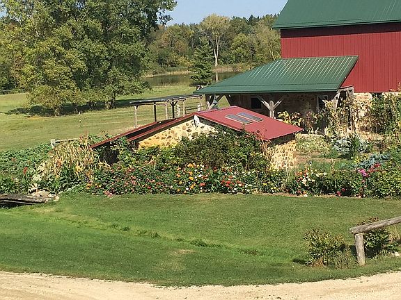 This is truly a unique, one of a kind house and property nestled in the hills near Holy Hill. The original log house built in the 1840's has been added on to and remodeled over the years. The house on this hobby farm sits on 5 acres with a large barn and outbuildings. The barn has an attached two stall horse barn. The adjoining 20 acres has 5 acres fenced for horses. The 20 acres has a shared 5 acre wild life pond and a 10 acre stand of spruce trees. The back line has access to the ice age trail. The barn has been rebuilt on the old foundation due to a fire. The lower floor is insulated and has in floor heat and is currently a wood working shop. The upper floor is a new open pole barn. The roof has solar panels for the barn and house.