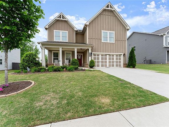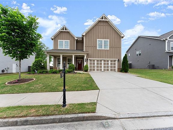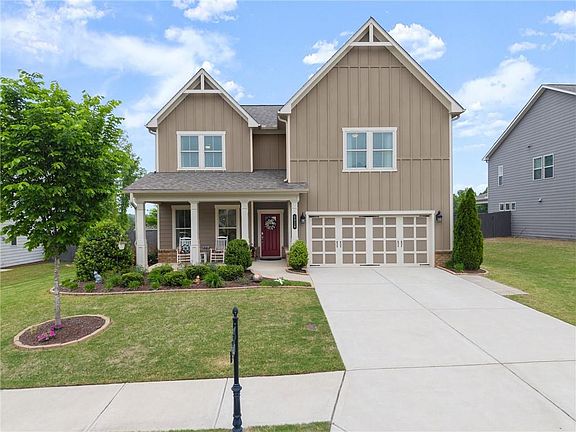 Welcome to this beautifully designed Craftsman-style home that seamlessly blends classic architecture with contemporary luxury. From the inviting front sitting porch, you’ll immediately feel a sense of warmth and belonging. Inside, an open-concept floor plan connects the chef-inspired kitchen—featuring double ovens and a walk-in pantry—to a spacious living room, creating an ideal space for entertaining and everyday living. The main-level primary suite offers ultimate convenience, with his-and-hers closets and a spacious en-suite bath boasting a separate shower and soaking tub, double vanity, and ample storage. Storage throughout the home is abundant, thanks to smartly designed built-ins and hidden nooks cleverly integrated into the layout. A main-level half bath provides comfort and privacy for guests. Upstairs, you’ll find two additional bedrooms, each with their own private en-suite bathrooms, perfect for guests, older children, or multi-generational living. A second living room on this level offers extra space to relax, work, or entertain. Step outside to your screened-in back porch retreat, complete with a wood-burning fireplace, mounted TV, and a built-in grilling station—ideal for year-round outdoor enjoyment with mountain views. Additional highlights include a 2-car garage, thoughtfully landscaped yard, and access to neighborhood amenities such as a pool, tennis courts, and a scenic pond. This home truly checks every box for comfort, flexibility, and style-ideal for families of all shapes and sizes. **$1K Preferred Lender Credit Available with Brittany Evans, Nexa Mortgage and Home Warranty option offered on this home!!**