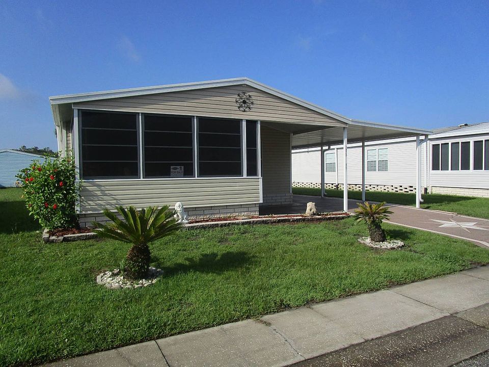 All reasonable offers will be considered. It is located in Forest Lake Estates 55 plus gated community. Clubhouse, 2 swimming pools, hot tub, mini golf, shuffleboard, tennis, horseshoes, fishing pond, pool tables....lots of activities including bingo, cards, dinner dances and much more... This home is located in a LAND LEASED PARK. *2 Bedroom, 2 Bath home, 896 sq foot does not include the enclosed lanai. *1992 Carr, home will come turn key ready *2010 New Roof *2014 New AC *Kitchen update 2014 *Original windows *White piping throughout home *2009 New carpet and linoleum *2008 Driveway painted *2005 New toilets in both bathrooms and home painted. *Shed has washer and dryer and extra refrigerator. The lot rent on this home will be $492.65 a month which includes trash pick up twice a week, lawn care and pass thru taxes. Lot rent includes all the amenities in the park. Email or call our team today for a showing ...Rich and Colene Olsen and Kevin and Brenda Hall #olsenhallteam
