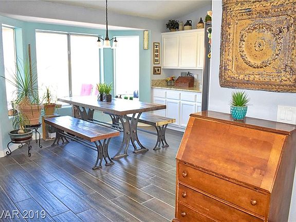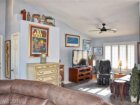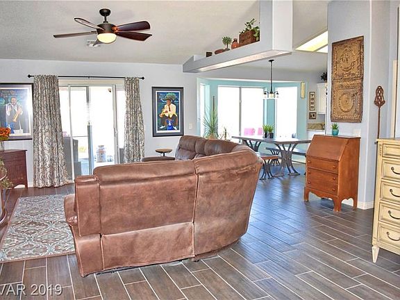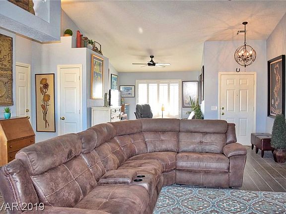 Polished home with incredible mountain views! Granite tops, porcelain tile, stainless appliances, & shutters. 1.25 acres, fully-fenced backyard, & RV gate with power/water RV hookup. Covered patio offers great space off back slider, & additional gazebo(spa) area is connected by sidewalk. This gorgeous property sits just minutes from Mountain Falls Golf, Spring Mountain Track Club, Front Sight, casinos, hiking/biking, & a short drive to Las Vegas!