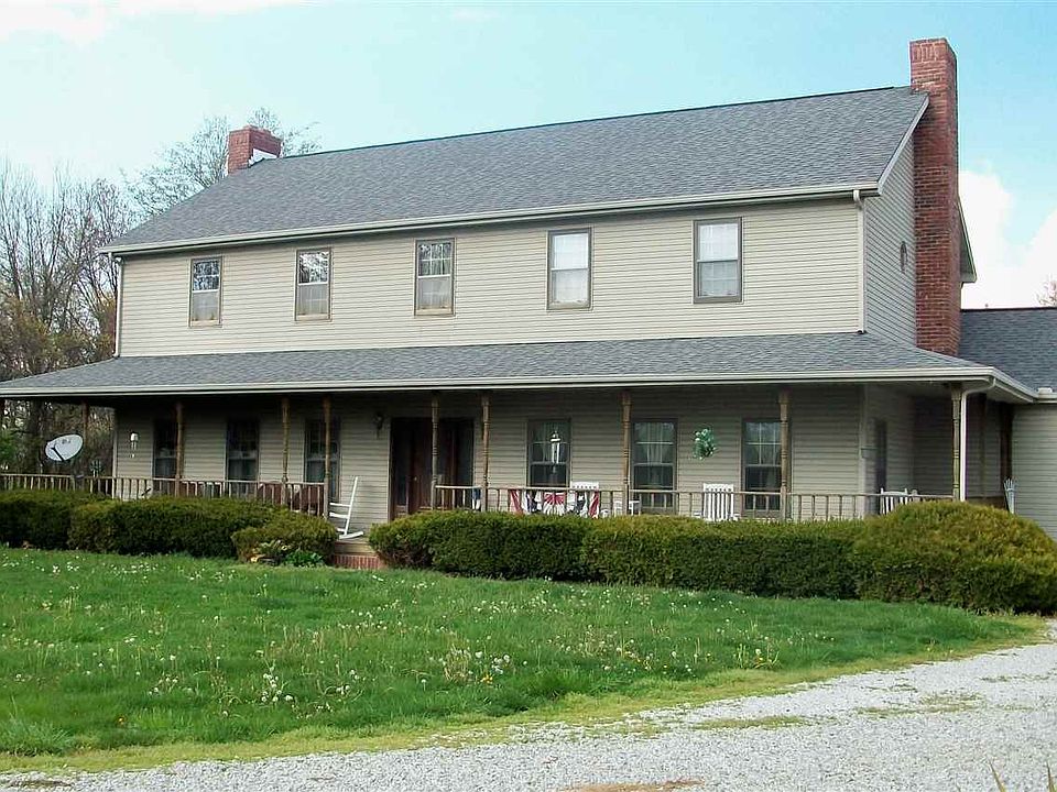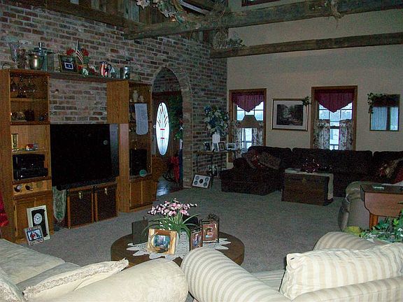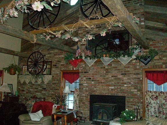Beautiful 4-5 bd, 3 1/2 ba Georgian style home. Spectacular living room with vaulted ceiling featuring a 2 seated wedding buggy mounted on the beams. Gorgeous natural hardwood floors throughout the main level, with a variety of wood integrated in the design. All of the brick walls on the main level are constructed with nostalgic brick from the Midland school and the Sullivan bakery. The foyer includes a stained glass entry door, leading to the spacious dining room, embellished with stained glass transom. The kitchen is equipped with a vast amount of cabinetry and is complemented with a breakfast nook. Upper story boasts a sitting room loft overlooking the living room, and birds eye view of the wedding buggy. Master bd suite with private bath, 2 additional bedrooms and another full bath complete the upper level. Main level also includes a 4th bd with attached sitting room that could be utilized as a 5th bd. Additional 1 1/2 baths on the main level. The back yard is home to an inground saltwater pool, improved recently with a pump, filter system and automatic vacuum. The home comes with 2 gas forced air furnaces and 2 central a/c and the main level furnace has a wood add on. There is an attached 2 car garage, and 2 Pole barn outbuildings. Video Camera Security System included. All situated on 12.50 ac, m/l. Words cannot do justice to this marvelous home!