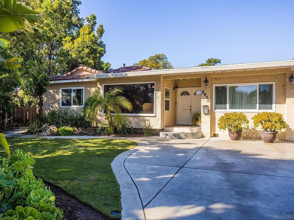 The serenity of Mount Helix with the convenience of the Grossmont area. Wonderful single-level home located on a very private approximately half acre usable lot on a quiet bend in the road within the highly desirable community of La Mesa. This amazing residence backs to a canyon providing a beautiful view of Cowles Mountain and toward the coast. Updates include newer wide plank white oak floors, vinyl windows, and updated electrical. The living room features large picture windows that look out to a secluded front yard with mature palm trees. A beautifully appointed kitchen with stainless steel appliances including a newer stove, recessed lighting, and crisp white cabinetry.