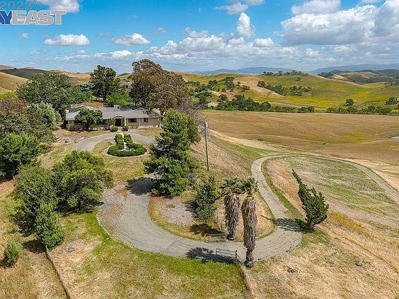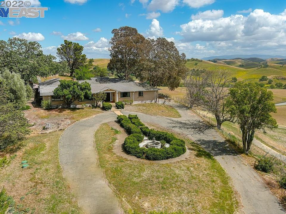 NEW PRICE!!!! Gated hilltop estate with jaw dropping 360 degree views. Kitchen/Family room combo, fireplace and custom wood carved bar! Main house includes Primary Bedroom Suite, Bedroom 2 and Office/Bedroom 3. Separate 2 Bedroom/2 Bath Guest House. The home is oriented around pavered Courtyard with scenic beauty, privacy, and a perfect area for entertaining! Large deck wraps around a majestic 100+ year old oak tree and soaks in the sweeping views. Attached three car garage with large storage area. Plenty of room for all cars/Rv's/Toys etc! 14.51 acres of rolling hills, ideal for orchards, vineyards, horses, and more!