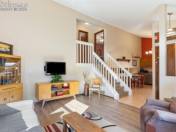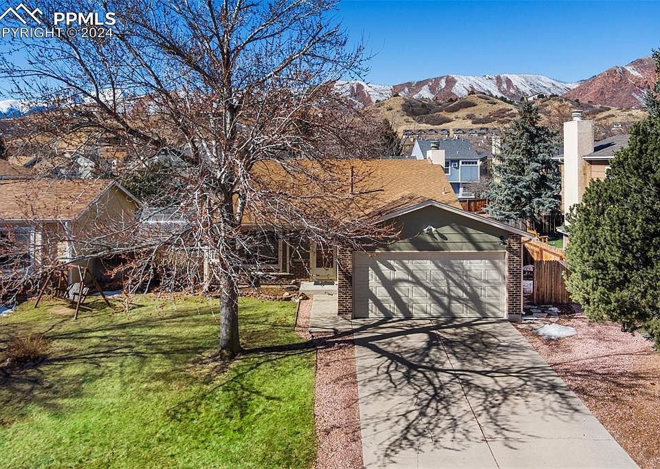 Welcome to your new home nestled in a serene established neighborhood with a park and hiking trails nearby. This delightful abode boasts a picturesque setting with mature trees adorning the front yard, offering tranquil surroundings and scenic views. As you step inside, the main floor welcomes you with vaulted ceilings and a well-appointed kitchen featuring Corian counters, perfect for culinary endeavors. The lower level presents a cozy family room, complete with a wood-burning fireplace, creating a warm and inviting ambiance. A conveniently located bedroom, accompanied by a nearby half bath, provides flexible living space to suit your needs. Ascending to the upper level, you'll discover the master bedroom, showcasing double closets and access to an attached full bathroom adorned with a skylight. The master bedroom extends to a deck overlooking the fenced backyard and breathtaking mountain views, providing the ideal spot for relaxation. This home has been lovingly maintained with recent updates including new flooring and a water heater in 2019, a new garage door in 2021, a new roof in 2022, and a new furnace in 2023. Additionally, most of the windows have been recently replaced, ensuring both energy efficiency and aesthetic appeal. Revel in the convenience of a two-car attached garage and relish in the panoramic view of Pikes Peak from the back of the property. Don't miss this opportunity to own a home that combines comfort, tranquility, and modern updates in a truly idyllic setting. Schedule a viewing today and start envisioning the lifestyle awaiting you in this remarkable residence.