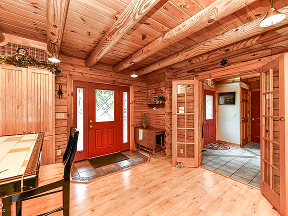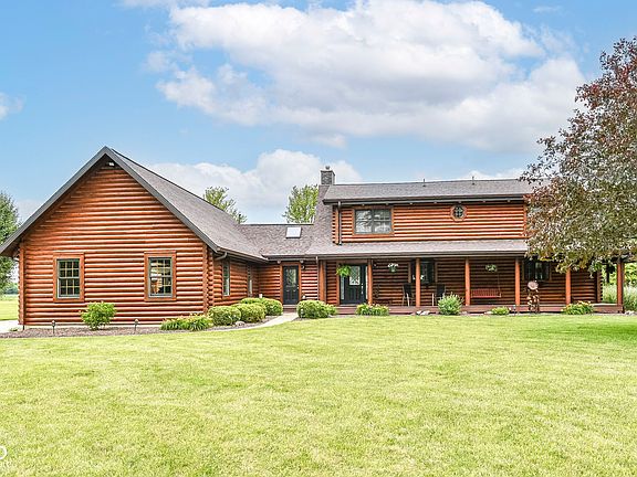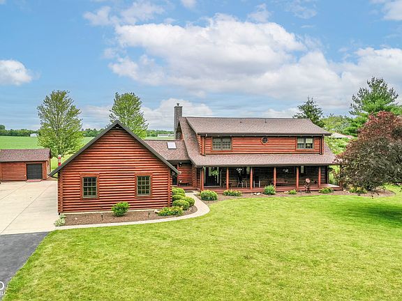 Welcome home to a piece of heaven in the country! You will absolutely love and appreciate this beautiful log home that has been meticulously built and maintained. Enjoy your evenings on the covered porch, sit back and relax with your morning coffee, cozy evenings around the fireplace. This home features a huge great room opens to the kitchen. Main level primary bedroom includes custom tile shower, tub, great closet and has an exterior entrance to the covered deck that is set up for a hot tub, if desired! Custom hickory cabinetry in the kitchen, office and primary bathroom. Upper level features a great reading/office nook, full bath and two generous bedrooms. Lower level is set up for a perfect bar, workout room or use your imagination and make it whatever you want! The huge finished garage is every craftsman/mechanics dream. Enjoy the perfect landscape, log storage shed and the wide open spaces of being in the country. This home comes with an additional lot, build another barn if you want! All of this is close to downtown Pendleton and all it has to offer!