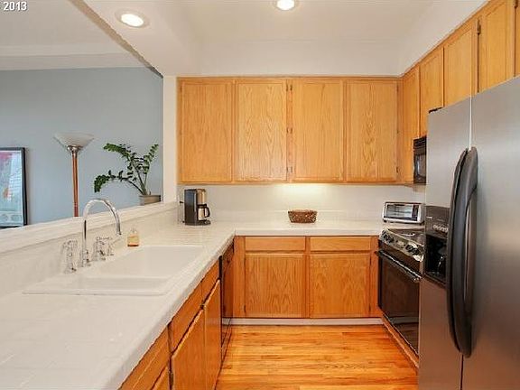 Set in the heart of Johns Landing on a quiet tree-lined street. Wonderfully maintained & comfortable w/gleaming hardwoods on both levels, skylites, lg windows & bay windows-perfect for inviting nature's light in all year & for views of Mt Hood. 2 spacious MA Suites-plenty of closet space. Park & store in roomy 2C tandem garage. Willamette River Greenway-so near & so enjoyable.