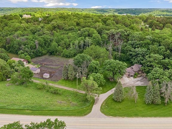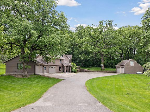 Discover the perfect blend of privacy and convenience with this 4-bedroom, 3.5-bathroom home on 6.5+ acres, less than 10 minutes from downtown Rochester and the Mayo Clinic. This residence features two master en suites and two laundry rooms, ensuring comfort and practicality. The expansive living room, with a cozy gas fireplace, creates an inviting atmosphere. For the hobbyist or car enthusiast, the property includes extensive storage options. The attached four-car heated garage boasts a large workbench, while the detached two-car heated garage offers a bonus room above—perfect for a playhouse, crafting, or a game room, fully equipped with air conditioning and heat. A massive pole building with a concrete floor, industrial-sized garage door, electrical service, and water supply can easily accommodate large RVs, boats, and classic cars. Animal lovers will appreciate the expansive pastures with a lean-to shelter and automatic water trough, all safely enclosed by an electric fence.