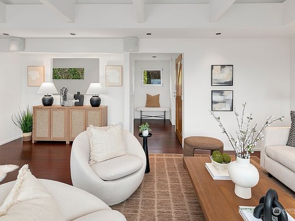Perched above Beach Drive, this stunning home offers unobstructed views of Puget Sound and Olympic Mountains from every room! Light filled living area features vaulted ceilings, in-wall surround sound speakers, cozy gas fireplace which flows into gourmet kitchen and dining room with ample storage and beverage center. Primary suite on main is a true retreat, complete with en-suite bath and walk-in closet. Step outside to spacious west-facing deck, ideal for enjoying sunsets. The home also includes a MIL suite complete with kitchen, bath, and private deck - perfect for extended guest stays. Large family room for additional living space on lower level. Set on .34 acres of beautifully landscaped grounds, only 15 mins to Downtown Seattle!