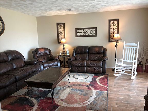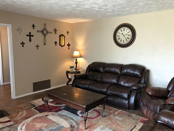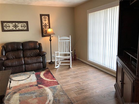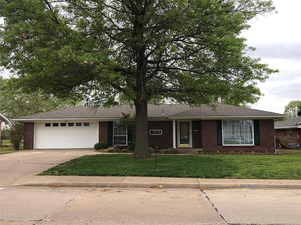 Move-in ready home with great curb appeal and upgrades! New Roof 2018. Kitchen has breakfast nook, pantry, and newer countertops and light fixture. Gorgeous wood-look tile is continuous throughout the majority of the home, carpet in bedrooms. Spacious living room has beautiful picture window. The den could be used as dining or second living space, has fireplace, patio doors. Oversized master, walk-in closet, private bath. Utility room located near the bedrooms, and has exterior door for mud room use.