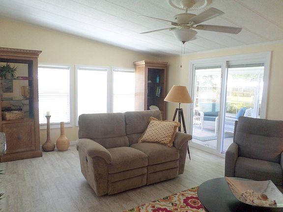 UNDER MARKET VALUE - NOT ANOTHER LIKE IT ON THE MARKET IN THIS COMMUNITY - GRAB IT NOW!!! 1250 sf, bright and beautiful 2 bed, 2 bath, "luxury condo-like" renovation on quiet cul-de-sac is absolutely move-in ready and includes all furnishings pictured. This lovely home boasts: - 3/4" plywood subflooring - Luxury antibacterial, heavy-duty "wood plank" Congoleum vinyl flooring throughout the ENTIRE HOME minus master shower room with tile floor - Thermopane windows - Fiberglass entry door and sliding doors with between-glass blinds - Solid wood soft close kitchen and bath cabinets - Granite counters in kitchen and baths - Whirlpool appliances - Newer quality light/fan fixtures - Custom tiled shower & bath surrounds - Updated plumbing and electric - New white outlets and switches throughout - 2013 Trane HVAC - Vapor barrier - 2" PVC blinds on all windows Enter this sunny home through the quality fiberglass door with between glass blinds. Gorgeous wood-look, plank vinyl flooring rated for lifetime and runs through the entire home (tiled master shower room) including all closets. Cathedral ceilings add to the spaciousness of this "Great for entertaining", open concept home! Beautiful, spotless, white kitchen has solid wood cabinets with soft close drawers, large Lazy Susan, island with pull-out drawers for maximized storage and floor to ceiling pantry. Sunny window over deep stainless sinks with pull-down faucet. All newer matching Whirlpool appliances. The dining area is furnished as pictured and includes a built-in, lighted hutch with mirrored back. The living room is lined with windows plus top quality solar rated sliding doors with between glass blinds leading to the enclosed porch. All furnishings are in tip-top shape and tastefully coordinated. High-end lighted ceiling fan. The spacious lot allows peace and privacy for the 180 sf enclosed porch equipped with vinyl stack windows and furnished with rattan and wicker furniture. Add a portable A/C for year-round use of this relaxing space! A king sized, furnished master bedroom has 2 walk-in closets plus a standalone closet for vacuum and other utility storage. The main closet has attractive smoked glass French Doors and custom organization. Lighted ceiling fan. Second closet in en suite includes two large shoe racks. Updated wood vanity has soft close drawers, granite counter and under counter sink. Floor to ceiling linen closet. Separate room with tiled walk-in shower and comfort height commode. Attractively furnished "beachy" second bedroom is perfect for your snowbird guests and includes flat screen TV. Walk-in closet, lighted ceiling fan. Guest bath is located across hall with wood vanity, granite counter and under counter sink. Tiled bath/shower combo, comfort height commode and floor to ceiling linen closet. Camelot Lakes Village is a gated resort style retirement community where you have an endless supply of activities, spacious shady lots and some of the nicest neighbors in Sarasota. Clubhouse renovation includes large kitchen/reception hall, comfy TV room, computer room, library, saunas, billiard room, ceramics room with kiln and state-of-the-art fitness center. Two heated pools overlook beautiful lakes for all day relaxation! Tired of everything at your fingertips? Take a 7 mile drive to some of the most famous beaches in the nation and exciting downtown Sarasota. Paradise all day, every day!