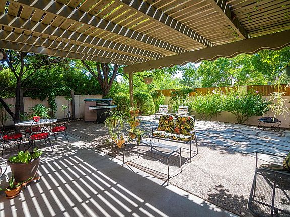 Lovely, spacious NE Heights home situated on a quiet cul-de-sac with 4 bedrooms on upper level & 1BR/office down! UPGRADES INCLUDE: Remodeled kitchen w/ stainless appliances. INDUCTION stove. Wood cabinetry, 2014 TPO roof & tile underlayment! Refrigerated Air-2 units! 2014 Stucco! Living & Dining with cathedral ceilings. Kitchen OPEN to Family Room w/ kiva gas fireplace. Pella sliding door to tranquil, lush, private backyard. Main floor BR/office has built in shelves & walk-in closet next to a full bath. Plenty of room for family and guests. Master suite is roomy! Full bath with soaker tub, separate shower, water closet. HUGE walk-in closet. 3 more large BRs up. Full bath with double sinks. So much storage too! 3- car garage.
