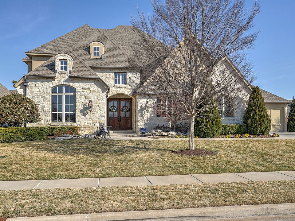 Stunning perfection in Jenks SE with pool. 4-car, corner lot. Outdoor fireplace. Large island, 2 dishwashers, master plus guest BR down. His & her bath, scraped hardwoods. Plantation shutters. Stone wall in dining, 2 gamerooms. 2nd gameroom could be 6th bedroom. Office on level 1.