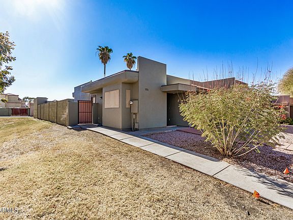 Charming 2 bed, 1 bath townhome in Mesa's Loma Villa is now for sale! This end-unit gem features vaulted ceilings, a spacious living area with soft carpet, and a bright eat-in kitchen with ample cabinetry, generous counter space, and stainless steel appliances ready for your culinary adventures. The primary bedroom offers a large closet and private outdoor access. Step outside to your private courtyard with a paver patio and low-maintenance turf, perfect for gatherings or relaxing. Plus, enjoy the convenience of a detached two-car garage with attached workshop room! Proximity to the community park and pool can't be matched. Convenience to the 202 freeway, shopping and restaurants are also ideal. Don't miss out—this incredible home won't last long!