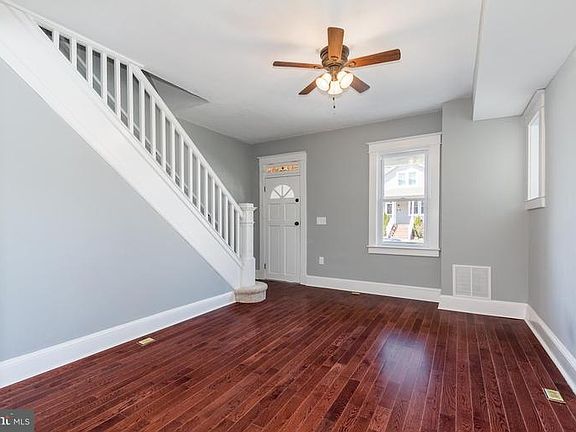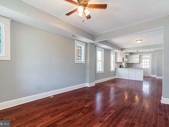 SUN DRENCHED PORCH FRONT RENOVATION W/ 3 FINISHED LEVELS & LARGE YARD! Hw floors throughout the main level, spacious living room & dining room w/ stain glass, Chef's kitchen w/ granite counters, ss appliances, & tile backsplash, main level full bath, upper level w/ 3 bedrooms & 1 full bath, fin basement w/ family room, 4th bedroom & full bath, large fenced yard, & driveway parking! Move right in!