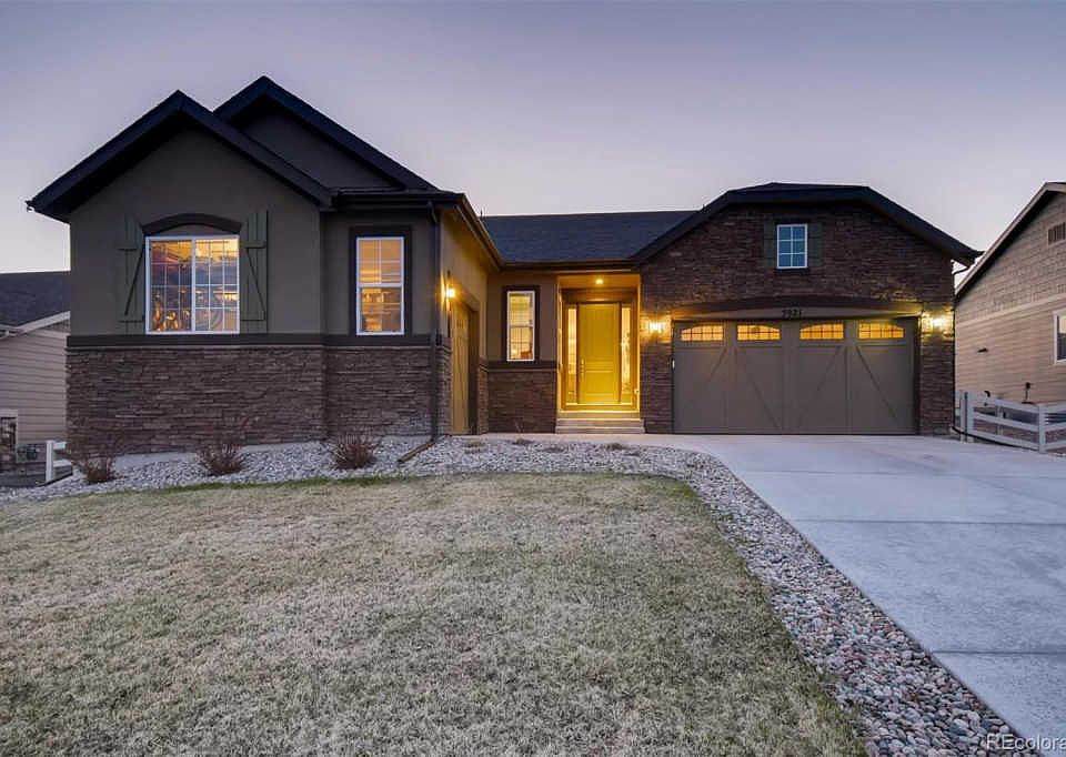 This is the PERFECT Ranch home you have been waiting for. Located in desirable Carriage Hills of Crystal Valley Ranch on a 1/4 acre lot! Popular Delaney Model by Richmond American Homes with all the right finishes and custom updates. As you step from the front covered entryway into the foyer you'll love the tall ceilings, wood flooring and gorgeous light fixtures. Generous open floor plan offers spacious living room with fireplace & dining room. At the heart of the home is a wonderful gourmet kitchen that will be the envy of all your friends. Tall 42" maple cabinets, huge granite slab center island, double ovens, 5-burner gas stovetop with range hood, French-door refrigerator, tons of countertop space and large pantry. You will love your private Master Suite with en-suite bathroom and huge closet. Two more spacious bedrooms near full bathroom with double sinks. Main floor laundry. Sweeping staircase leads down to a fully finished basement that is an incredible space for entertaining! Posh bar with beer tap and wine cooler. Downstairs bedroom would make a great second master or mother-in-law suite. Luxurious en-suite bath and enormous walk-in closet! You will be spending tons of time outside enjoying your big west-facing back yard, hot tub, covered back patio, gas line and enclosed dog run. Three-car garage will hold all your cars, tools and toys. Rain soft whole house water filtration system. Fantastic neighborhood with great amenities, pool, clubhouse, trails and more!