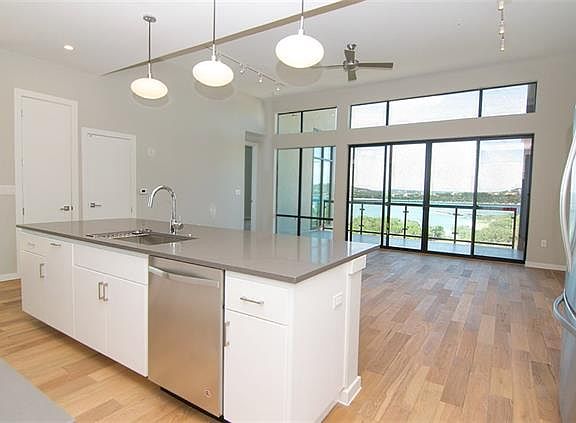 Victoria Falls Plan in the Brazos building. Built for entertaining. Dual Masters, wall to ceiling glass, extra large balcony. Stainless steel alliances included with Quartz countertop and hardwood flooring. Beautiful waterfront residence at The Waterfall on Lake Travis. Large, open floor plans with extraordinary views of Lake Travis. Residents have access to South Shore Marina.