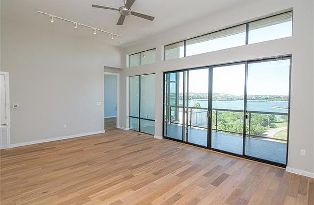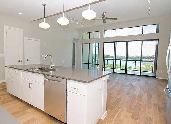 Victoria Falls Plan in the Brazos building. Built for entertaining. Dual Masters, wall to ceiling glass, extra large balcony. Stainless steel alliances included with Quartz countertop and hardwood flooring. Beautiful waterfront residence at The Waterfall on Lake Travis. Large, open floor plans with extraordinary views of Lake Travis. Residents have access to South Shore Marina.