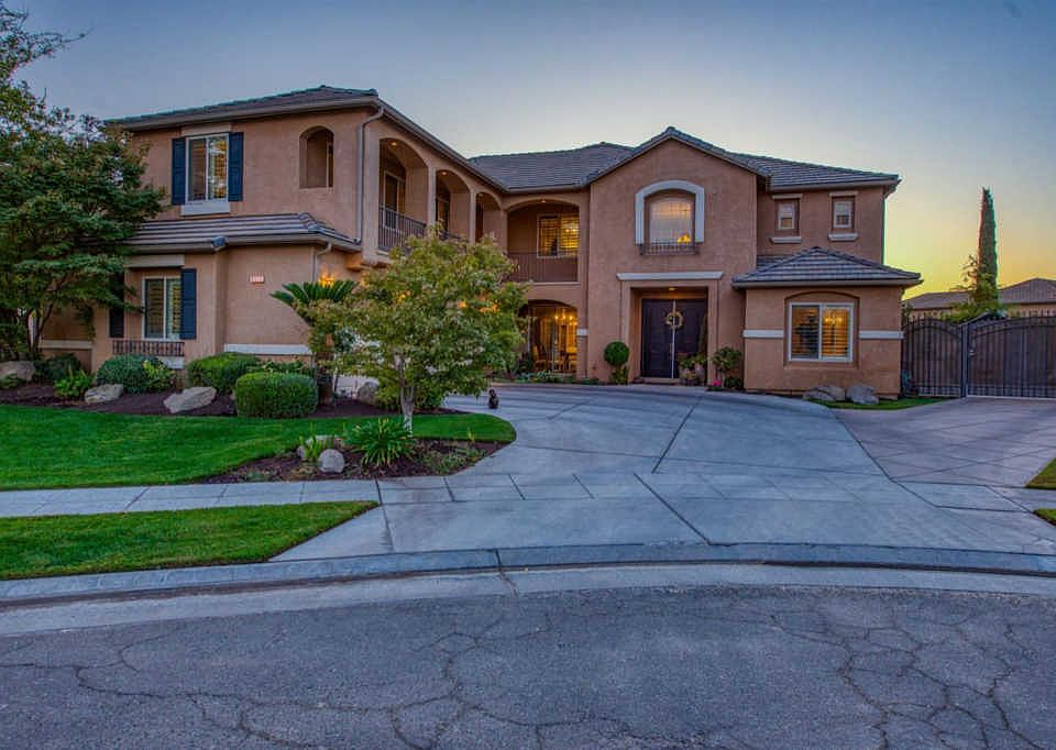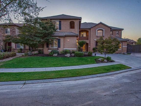 Truly Captivating home situated on a quiet cul-de-sac in NW Fresno. A luxurious formal entry sets the stage for the elegance to unfold throughout the two-level home where premium materials and high-end craftsmanship capture the eye. The grand chef's kitchen is equipped with stainless-steel appliances and ample cabinetry w/ granite countertops & marble tile backsplash and includes a butlers pantry. Approx. 4549sq', this home boasts 5BD, 4.5 BA, family & living room connected by a two-sided fireplace, and formal dining room. You will find the Master Suite w/ elegant fireplace & private balcony that overlooks that backyard, and a luxurious Master Bathroom feat. his & her vanities, large soaker tub & tile shower, and huge walk-in closet. Upstairs are 3 additional rooms, and a game room w/ access to a private balcony. Downstairs 1 bedroom w/ attached bathroom and office. The backyard is an entertainer's dream w/ sparkling pool & wet bar- the perfect place to relax on a summer day!