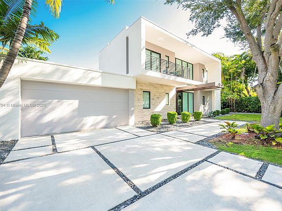 Gorgeous 2-story 4431 SqFt modern home on a quiet, tree-lined street in South Miami, east of U.S.1. Designed by renowned architect Giorgio Balli, this 5-bdrm, 5.5-bath home is an open concept with volume ceilings & a lot of natural light. House has a feel of indoor/outdoor living. All bedrooms are en-suites with walk-in closets. The MiaCucina kitchen offers top-of-the-line Thermador appliances, a glass wine cooler & quartz countertops. Add'l features: PGT impact windows/doors, electric car charger, bar area, quaint backyard, patio & pool area. Enjoy 3 balconies from the upstairs bedrooms with stunning views. Located near top schools Epiphany, Lourdes, Gulliver, Beth Am, Riviera Elementary & walking distance to Dante Fascell Park. Click on virtual tour for details. Available Jan 1, 2026.
