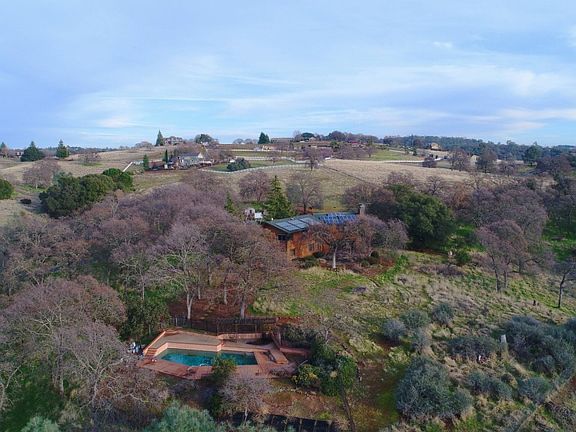 Amazing views of the valley, Downtown Sacramento, and sunsets!! Minutes from El Dorado Hills. This custom home was built in 1992, has 3 bedrooms, 2.5 bathrooms, is over 3,100 sq ft, and sits on just over 10 acres! The windows provide an abundant amount of natural light throughout the entire home. Real wood floors, high ceilings, two fireplaces, and views from most of the rooms. The home also has a pool with views of the valley, an owned solar system, and a basement for extra storage. The large circular driveway allows for plenty of guest parking. There is also plenty of room for your horses and toys! Please take a look at the sunset and drone pictures.