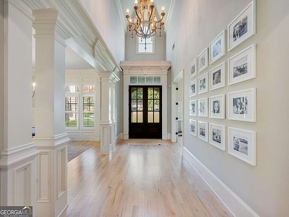 Welcome to this exquisite home in the prestigious gated golf course community of Chateau Elan. Built by Profile Homes, it combines timeless brick-and-stone architecture with a modern floor plan designed for today's lifestyle-offering exceptional indoor and outdoor living spaces, soaring ceilings, and walls of windows that fill the home with natural light. From nearly every room, enjoy serene views of a private wooded greenspace and a perfectly framed golf tee box in the distance. *Lots like this are truly rare!* The main level of the home features a large home office/den, dining room, fireside Great Room, huge kitchen with walk in pantry and open to the vaulted Family Room and you will love the Owner's Suite featuring a huge walk in custom closet and fabulous spa bath. This level also has access to the covered back deck from the owner's suite and the Great Room, so perfect for enjoying your morning coffee or a sunset cocktail. Upstairs are 3 spacious secondary bedroom suites each with their own bathroom and walk in custom closet and a bonus room/loft making for a perfect hang-out/study space. The terrace level basement is where lots of memories will be made with a great set up of a kitchenette/bar that opens into a fireside family room that opens perfectly transitions to the covered outdoor patio and salt water pool/spa and firepit.....and remember those great views from upstairs, well they are the perfect backdrop to the private pool setting too. The terrace level also includes game room/billiard space with barn doors opening up to a well-appointed and comfortable theatre room with linear fireplace and a half bath. Your guests will enjoy the large Guest Suite on the terrace level with private bathroom and access to the pool. A new home gym was recently added on this level and there is still plenty of organized storage space. Other features of the home include a 4 car garage with electric car hook-ups, epoxy floors and overhead storage. This one has it all......great drop-zone space and laundry for keeping things organized, huge walk-in pantry into a well appointed and spacious Chef's kitchen, gorgeous white oak hardwood floors throughout the main level, designer light fixtures, beautiful feature walls & ceilings that showcase the incredible craftsmanship in the home and so much more. This home does include a Full Membership to the Private Legends Golf Club and access to the Sports Club amenities that include a Junior Olympic Sized outdoor pool, kiddie pool, indoor fitness facilities, fitness classes, indoor gymnasium with walking track, tennis/pickleball courts, playground and Sports fields. The Chateau Elan neighborhood is a golf cart friendly neighborhood within the gates and outside of the gates via the Braselton LifePath that connects you to restaurants, retail, parks and other neighborhoods. Adjacent to the neighborhood is the Chateau Elan Resort, Spa and Winery. With a total of 3 golf courses and a par 3 course, this is a golfers paradise. Northeast Medical Campus is just outside the neighborhood and there is easy access to I-85 and all the Atlanta metro has to offer. This property truly has it all-luxury, lifestyle, and location.