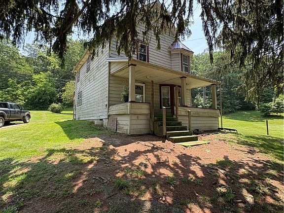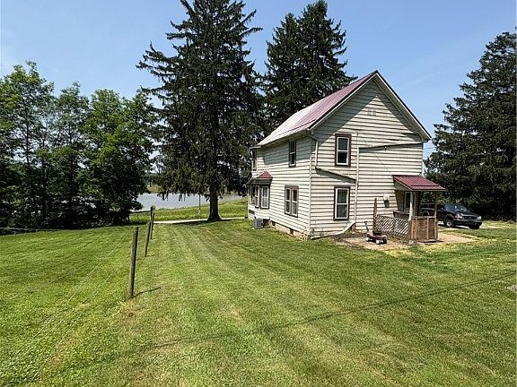 Welcome home! This spacious farmhouse situated on 2.099 acres in Rolling Hills School District is a must see! With beautiful views of the neighboring ponds (not included with this property - only the view), situated to catch the best sunsets and 4th of July fireworks, this home is the perfect combination of country living less than one minute from downtown Byesville. Built in 1915 by the Sears Co., this three bedroom, single bath home has so much potential! Original hardwood floors throughout with lovely bay windows for extra natural light. The basement features a walk out with easy entry to and from the backyard. The mature pine trees out front serve as great shade and privacy for the wide front porch. This property features a 24x30 barn, high tensile fence, and public water. Ready for your dream mini farm? Schedule your showing today!