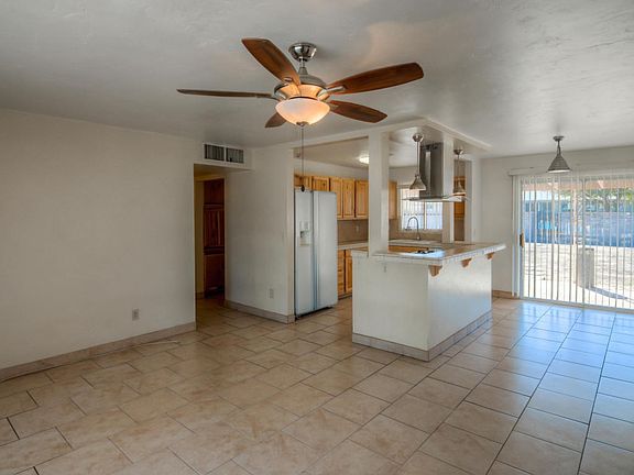 This charming ranch styled home features a bright and open layout. The kitchen showcases hickory cabinetry and ceramic tile counters. The kitchen opens up to the dining area and spacious family room. The bathrooms and laundry room have matching hickory cabinets, tile counters, and the shower has a beautiful tile shower surround. Three good sized bedrooms. The expansive backyard features a covered patio and is completely walled in. Great shed/work shop. Move-in ready!