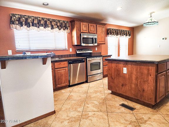 You couldn't ask for a more beautiful home! Solid wood and ceramic tile floors, stained wood Venetian blinds, F/P in LR. Large bedrooms all have walk-in closets, huge kitchen w/breakfast nook, walk-in pantry, island, stainless steel appliances & wood cabinets. Laundry room w/washer & dryer. ALL ELECTRIC HOME. 5' showers & low-flow toilets in both baths & a garden tub in the primary bath, porcelain basins in real wood cabinets. Additional primary-bedroom-RETREAT/OFFICE. SSVEC & Liberty Utilities for water, on a PAVED STREET in a cul-de-sac, with MOUNTAIN VIEWS & a 3 CAR DETACHED GARAGE! Block foundation. There's over an acre of land, so you can have horses if you choose. Decks front and back with ramps in front & to back access to the garage. Make this your home NOW!
