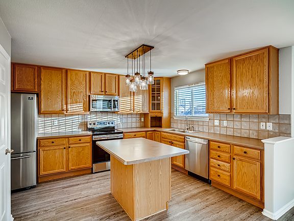 You will fall in love with this 4 bedroom, 2.5 bathroom open concept home that lets natural light settle in all the right places. As you step inside this home you will notice sleek, wood-type flooring and soaring, vaulted ceilings giving the home a spacious feel. The well-designed kitchen features steel appliances, a kitchen island, tiled backsplash, and plenty of cabinet space making it a perfect place to prepare a meal. The spacious primary bedroom showcases vaulted ceilings, a walk-in closet, and an en suite bathroom that includes a dual sink vanity and a separate, oversized tub! The backyard has a great patio for summer barbecues and the home has no rear neighbors! Located near parks, trails, Saddle Rock Golf Club, and Southlands mall, you will be near everything you need!