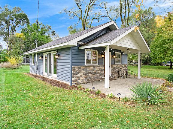 Cozy and charming move-in ready bungalow. Kitchen has stainless steel appliances, granite counter center island. Open concept living and dining room area.Replacement windows and doors throughout. Covered front porch and new vinyl siding. The bonus shed is insulated and plumbed for gas and water. Year built and lot size are estimated.