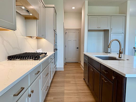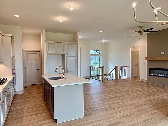 Back by Popular Demand – The Renee Plan by M&M Custom Construction! Now available in Watermarke, this stunning home is nestled on a private cul-de-sac lot backing to open farm ground—offering peaceful views and no rear neighbors. With a timeless front elevation and thoughtful design throughout, this home is built for comfort, function, and style. Step inside to a bright and inviting main level featuring 10' ceilings, large picture windows, and a cozy electric fireplace that anchors the living room. The well-appointed kitchen includes quartz countertops, painted maple cabinetry, a walk-in pantry, and a spacious island perfect for casual dining or entertaining. Enjoy meals in the generous dining area, which opens directly to the 10' x 14' covered deck—the ideal space to relax and take in the tranquil views. The luxurious master suite offers a large bedroom retreat, a spa-inspired bathroom with dual vanities, a soaker tub, tile shower, and a walk-in closet with direct access to the laundry room for added convenience. Two additional bedrooms and a full bath complete the main floor. Downstairs, the fully finished basement expands your living space with a large family room, walk-up wet bar, two additional bedrooms, a full bath, and ample storage—including a dedicated space that’s perfect for a future office or hobby room. This exceptional home is available now—don’t miss your opportunity to live in one of the area's most desirable communities! If you hurry, you can still make nearly all of your own selections! Finished interior pictures are of a Renee Plan previously built in Watermarke - finishes will vary from those pictured. Some information may be estimated and is not guaranteed. Pricing is subject to change without notice (prior to contract). Please verify schools with USD 262.