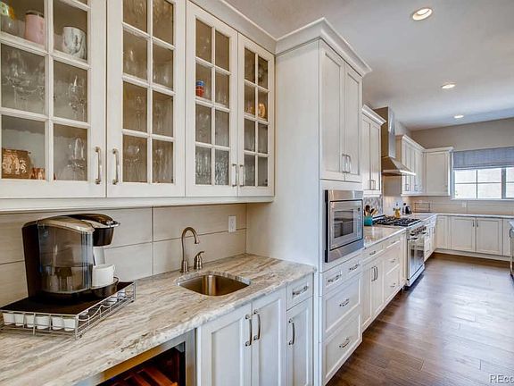 Fantastic 2-story home in Marvella filled with designer touches. Main floor features an open floor plan with sprawling wood floors and double staircase. Wallpapered formal dining room connected by a butler pantry to gourmet kitchen featuring Dacor appliances, oversized marble island with concrete farm sink, and beautiful lighting fixtures. Kitchen overlooks breakfast nook and living room with gas fireplace. Bonus room off living room is perfect for an office/den or play area. Slider leads to a professionally landscaped space with an oversized brick patio, drip system and natural gas hookup. Upper floor features two secondary bedrooms, loft, and spacious master suite with double shower, tub, 2 sinks, attached 14âx9â walk-in closet and a pass-through to the laundry room. Open basement allows for room to grow with egress windows positioned for 2 extra bedrooms and plumbed for an additional bathroom Community pool and fire pit. Convenient DTC location. Walk to Greenwood Athletic Club, multiple parks and trails. Cherry Creek Schools.