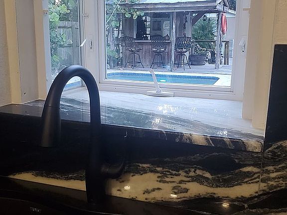 Key West Compound, split bedroom plan in main house, concrete in ground salt water pool with Koi pond, waterfall and cabana. separate quest house/ 2 car climate controlled garage off rear alley. Sip your cocktails at the waterfall/cabana in this lush tropical landscape setting. Exquisite Custom built one of a kind wood cabinetry with Granite Tops, Marble back splash. and Original 1958 Polished Terrazzo floor!!! Custom built Oak and Marble dining table matches the kitchen. Brand new 2020 Bosch 3 ton 20 sear high efficiency AC , Rheem tankless water heater, and both roofs replaced in 2020 with Owens Corning 30 year roofing system. Parking in Front Driveway, and in Rear Paved Alley. Rear Alley Garage Access.