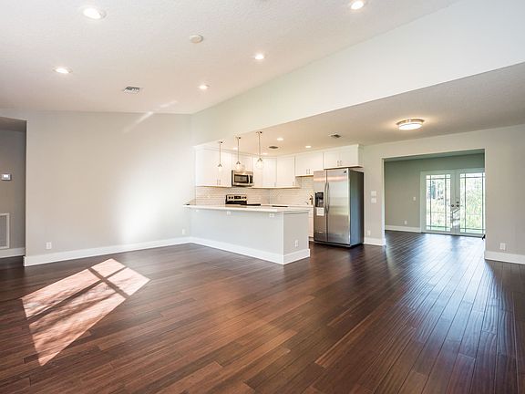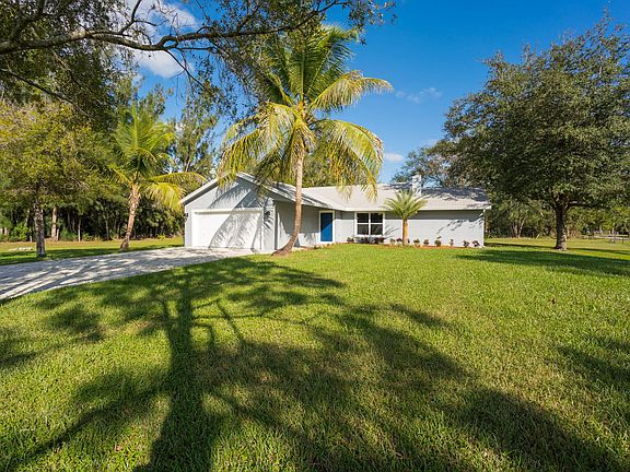 Surround yourself with natural views from this beautiful fully remodeled, bright & spacious, 3BR/2BA open-plan home, located on close to 1.5 acres, in the rural, peaceful community of The Acreage. This home is flooded in natural light and has many desirable features such as bamboo floors throughout the entire home, neutral colors, large family room overlooking the yard and pond, and a brand new kitchen with white quartz counter tops, stainless steel appliances, subway tiles, and white shaker cabinets. The spacious master suite has French door access to the backyard and a redesigned bath featuring a frameless glass-paned shower, white vanity with glass counter top, and wood-look tile flooring. All new A/C, water filtration system & water heater. 2 car garage and plenty of yard space.