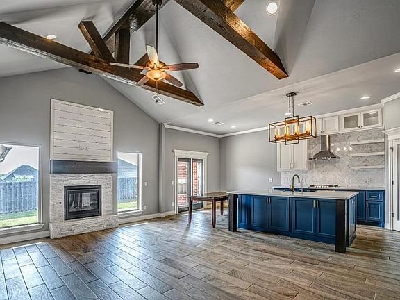 Beautiful 4 bed home, 2 and 1/2 bathrooms in East Edmond's Gated Hampden Hollow! The sought-after cul-de-sac home has a great open floor plan with spacious living, dining & kitchen. Wood-like laminate floors and tile through entire house. Living features cathedral ceilings & gas log fireplace. Kitchen includes quartz counters, gas stove top, eating bar and large pantry. Master suite features large corner jetted tub, walk in shower, double vanities, plus two walk-in closets. 3 car garage with storm shelter. Outdoor fireplace and covered patio. HOA includes gated access, pool & playground. Easy access to I-35 and Lake Arcadia. STROM SHELTER, SPRINKLER are installed