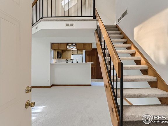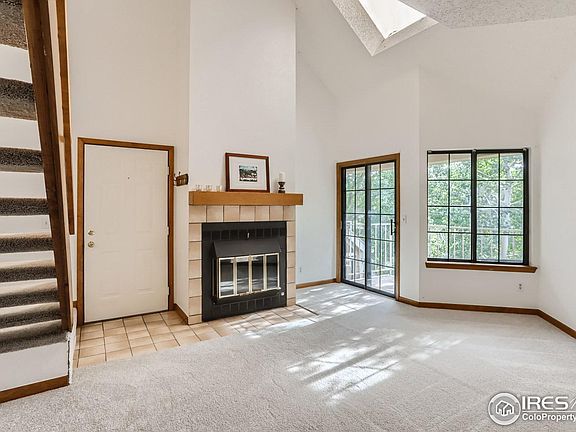 This is a fantastic floor plan with tons of potential! The entry greets you with 18' cathedral ceilings, making the space feel much larger than it really is and adds a unique design feature . The patio space makes for a wonderful place to sip your morning coffee, or do afternoon work on the computer while a mature aspen tree offers a cool break from afternoon sun and heat. An open kitchen and living space is perfect for light entertaining. In the winter time, you and your guests, or perhaps dog or cat can warm in front of the wood burning fire place. The large primary bedroom has expansive views east, perfect for watching late afternoon lightning storms form your King Sized bed. The additional loft space, which can be sealed off to be a 2nd bedroom with HOA approval, has ample storage off of it. The spacious loft itself can easily function as an additional bedroom, office space, lounge space, music studio, or art studio. Has newer carpet, newer boiler, fresh paint and a new roof. Just below the condo is your carport, making for easy access. When touring, make sure to walk the mature grounds. The path just East of the condo, takes you to the Tennis Courts, Large Sparkling Swimming Pool, Gunbarrel Commons Park and Twin Lakes Trail system. Avery Brewery and Beyond the Mountain Breweries are just a 10 min walk away. Great community and only minutes from Downtown Boulder!