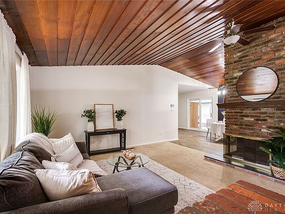 Welcome to this beautifully updated brick ranch! Featuring 3 bedrooms, 1.5 baths, and over 1,400 sq ft, this one-floor home offers the perfect blend of comfort, style, and low-maintenance living. When you enter, the spacious living room showcases a vaulted wood ceiling, brick fireplace, and a large picture window that fills the space with natural light. The open kitchen provides generous counter space and flows seamlessly into the dining and family rooms. A built-in adds character, while the enclosed sunroom offers a versatile bonus space to relax or entertain. Recent owner updates make this home truly move-in ready: All new HVAC system (2022), New gas water heater (2022), New sunroom flooring (2024), New roof (2025), Main bath fully remodeled (2025), New paver patio (2025). Outside, enjoy a fully fenced backyard, storage shed, and new patio perfect for gatherings. The 2-car garage also provides attic storage. Ideally located near shopping, dining, parks, and quick access to I-75, this West Carrollton area gem has it all. Schedule your showing today!