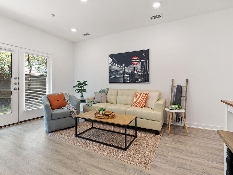 Located at 5924 S Congress Ave #85, Austin, TX 78745, this stunning corner-lot condominium blends modern comfort with timeless style. Built in 2018 and meticulously maintained, the home is bathed in natural light, with windows framing mature trees and a large private backyard. Inside, you’ll find no carpet, just beautiful, low-maintenance flooring throughout. The living room features a striking shiplap accent wall, creating a warm and inviting focal point. The kitchen boasts sleek quartz countertops, a stylish backsplash, and a generous bar area — ideal for casual dining and entertaining. The bathroom offers a double vanity and tiled walk-in shower, combining functionality with spa-like comfort. The bedroom serves as a serene sanctuary with an ensuite bathroom for added privacy and ease. Step outside to your fenced backyard, perfect for relaxing, entertaining, or enjoying Austin’s sunshine under the canopy of mature trees. This home delivers the best of modern Austin living — bright, stylish, and perfectly situated.