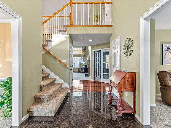 Experience the Colorado lifestyle in the highly sought-after Greenfield neighborhood. Conveniently located in Centennial on a quiet cul-de-sac with a lush 1/3 of an acre that is close to Saddle Rock Golf, shopping, dining, & entertainment at the Southlands Mall. A grand entry sets the tone for an open, bright, & flowing floorplan. Enjoy the vaulted formal living, formal dining with bay window, remodeled 3/4 bath, bedroom currently used as study & great for in-laws next to bathroom, 2-story family room with new high-end fireplace, & sparkling grand windows. Delightful-updated kitchen with eat-in area, breakfast bar, technology center, slab granite counters, gas cooktop, tiled backsplash, wall oven & microwave, expansive cabinetry, tile flooring, attached butler's pantry, & all appliances. Main floor laundry room with utility sink & cabinet storage. Rejuvenate in the vaulted master retreat & ensuite 5-pierce master bath with huge walk-in closet. Three more bedrooms & 2 more baths round out the upstairs, one being oversized w/ensuite bath & perfect for guests. Relax & renew on the spacious Trex deck taking in the Colorado outdoors with all the spring blooms & peaceful oasis. Caring is easy w/backyard storage shed. Truly turn-key & only the 2nd owners since built new, this home has been very well maintained with newer roof, gutters, windows, exterior paint, furnace, central air conditioning, new hardware & fixtures. Rare-huge 891 sqft., 4-car attached tandem garage that is insulated & finished & has a climate control mini-split air conditioner for your enjoyment of sportscars, hotrods, hobbies, crafts, & storage. A recently remodeled Greenfield community clubhouse, pool, tennis, pickleball, parks, playgrounds, & trails await your enjoyment with neighbors at planned community events. Terrific Cherry Creek Schools. Financing available BOK Financial,Tracey Christopher 303-524-3112(nmls#248843). Call for your private showing today as Greenfield homes of this caliber go fast