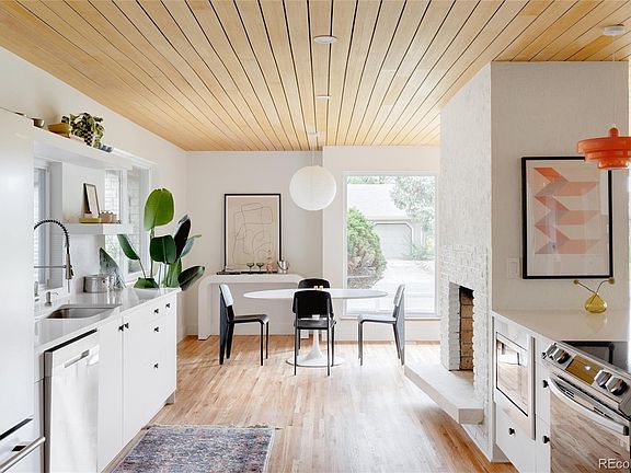 Discover modern luxury combined with classic style with this thoughtfully refinished mid-century modern home featuring 5 beds and 3 baths. The home's entry welcomes you with a spacious breezeway, ideal for entertaining or enjoying outdoor moments regardless of the weather. Inside the expansive main floor boasts a large open living area featuring a wall of windows that flood the space with natural light. Accented with wood slat ceilings and hardwood floors throughout, plus a double sided wood-burning fireplace. The fireplace has been refinished with stucco that contrasts the wood ceilings beautifully. The kitchen takes center stage with a generous 10 ft island, perfect for both culinary creations and social gatherings - finished with quartz countertops, plentiful cabinet space to keep you organized, statement pendant lighting and stainless steel appliances. The kitchen opens up to the living and dining room making an ideal area for hosting. On the main level three bedrooms, including the primary suite, offer convenient comfort. The primary suite features a spa-like bathroom with dual sinks, terrazzo tile floor, and a glass-encased shower. Convenience meets functionality with an adjacent hall bath and a thoughtfully placed laundry room. Descend down the stairs, lined with plush new carpet that continues into the basement to discover a second living area, two additional bedrooms, and another bathroom, providing versatility and extra space for various needs. The seamless flow from the main floor to the lower level ensures a cohesive living experience. Step outside to a fully fenced backyard, providing privacy and space for outdoor activities. A two-car garage adds the final touch to this property, completing the perfect blend of style, comfort, and functionality. On top of all that, rest easy with a newer roof, sewer line, electrical panel, radon system and mechanicals. Primary bathroom shower glass enclosure to be installed next week.