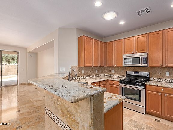 Spacious 4 Bedroom, 2 Bath, 3 Car Garage. Sparkling Pool! Solid surface flooring throughout. Open concept kitchen with granite countertops and Maple Cabinets, Gas Appliances. Large Laundry Room, Covered Patio, Prestigious gated community among the Mountains. Amenities include numerous walking trails, Children's Play area with Water Pad. Beautiful Green Belt with Ramadas.