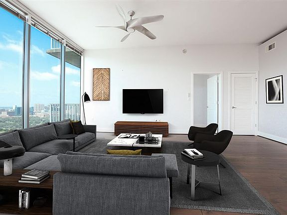28TH FLOOR!! Please come to see this luxury penthouse between downtown Houston and the medical center. A high-rise apartment with a greenbelt view outside your window. All windows can overlook the Herman Park to give you an urban oasis feeling. A rare find 2+1 bedrooms unit plus 3 car garage in The Mosaic. Beautiful wood and tile floor throughout the house. Floor to ceiling windows bring in all day sunshine. The Hermann Park is out of your front door, the one-acre pool and recreation area on the 7th floor, the 6,000 sq. ft. social lounge and the 7,000 sq. ft. state of the art fitness center. 24-hour valet. 24-hour concierge. All measurements are approximate, please verify independently.