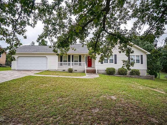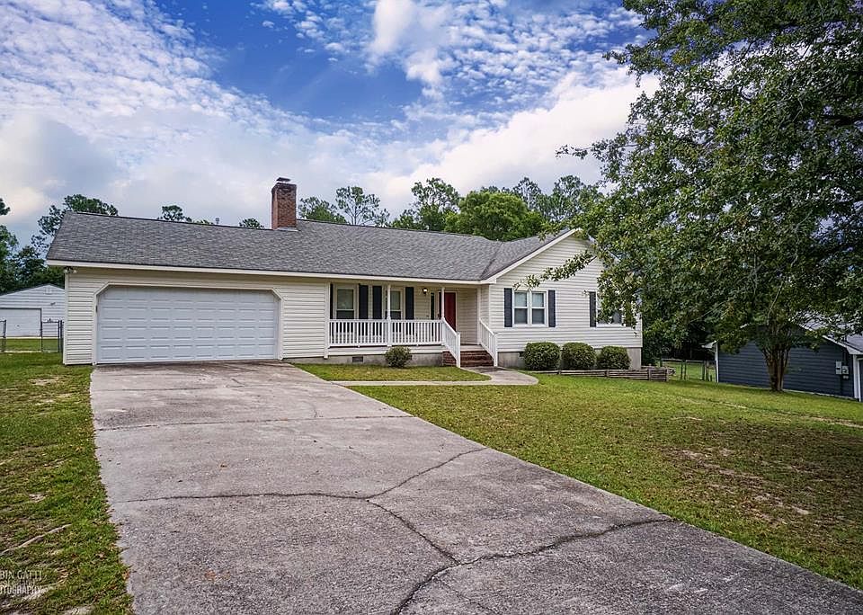 Move in ready! Three bedroom, two bath ranch in Angel Acres subdivision. Low maintenance vinyl siding, arch shingle roof, covered front porch, sun-room and back deck to overlook large fenced backyard. 24x30 wired workshop with roll up door, extra storage building, tornado shelter and two car attached garage. 2" blinds throughout and all appliances stay inc washer and dryer.