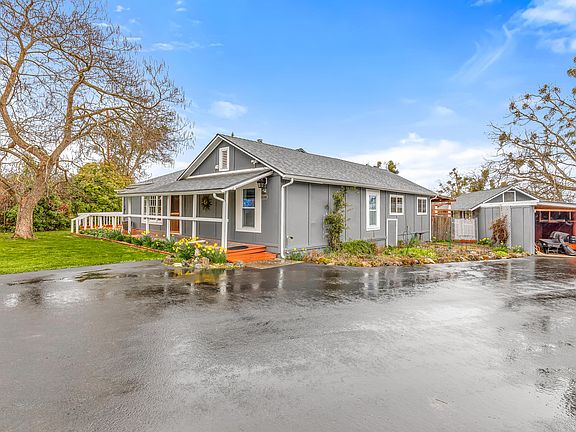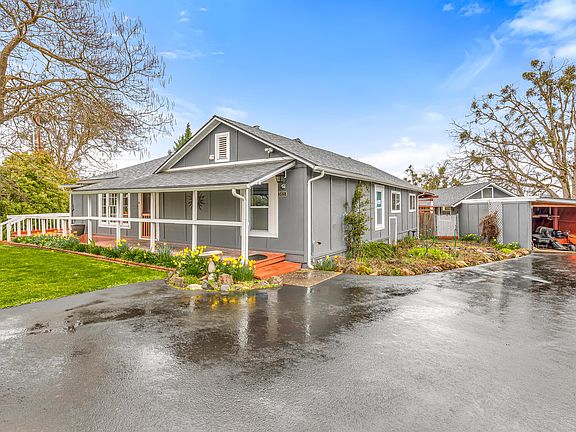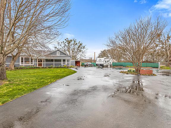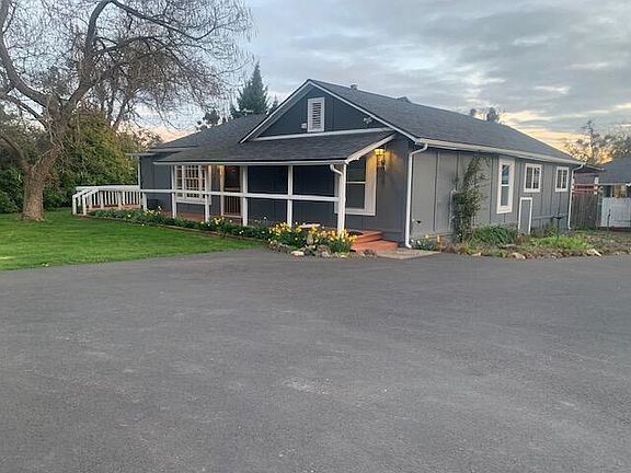 Charming Central Point home on .83 of an acre! Home offers huge landscaped storybook backyard and gated asphalt drive (done in 2020) with plenty of parking. Home features 3 bedrooms, 2 bath, 1470 square feet, separate living room, vaulted family room with gas stove, primary bedroom with bath. New water heater, pump and pressure tank in 2022, new bedroom windows in 2023, custom blinds thru out, outside is completely fenced front and back with a large covered deck, deck pond with large Koi and Goldfish, playhouse, dog kennel, chicken coop, great shop (approx. 360 SF), outbuildings and newer roof and gutters. Property is irrigated with RVID (0.6 irrigation rights per RVID). Sprinkler systems, oak trees, fruit trees, raised garden beds, plenty of room for boat and/or RV parking, very private! Call today for your tour of this awesome home!